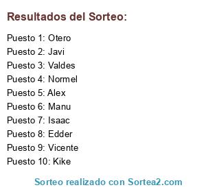 Lista de participantes: Javi, Valdes, Normel, Alex, Otero, Edder, Kike, Manu, Isaac, Vicente.