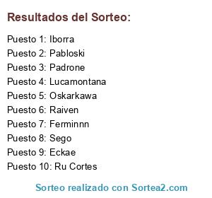Lista de participantes: Eckae, Pabloski, Ferminnn, Iborra, Sego, Lucamontana, Ru Cortes, Raiven, Oskarkawa, Padrone.