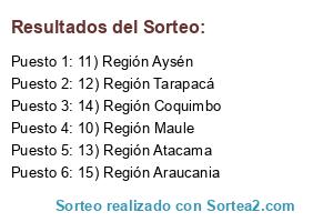 Lista de participantes: 10) Región Maule, 11) Región Aysén, 12) Región Tarapacá, 13) Región Atacama, 14) Región Coquimbo, 15) Región Araucania.