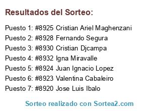 - Ganador 1: #8925 Cristian Ariel Maghenzani
