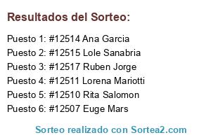Lista de participantes: #12401 Antonella Guido, #12402 Jen Neu, #12403 María Luz Piñeyro, #12404 Diana Sisto, #12405 Roberto Vazquez Hernandez, #12406 Ricardo Gordo Elena, #12407 Guillermo Perez, #12408 Yamile Cagnasso, #12409 Luca Massolini, #12410 Yanina de los Santos, #12411 Maria Constanza Hlawaczek, #12412 Miriam Akd Lombardini, #12413 Flor Orlandi, #12414 Mari Carmen Romero, #12415 Monika Velo, #12416 Pablo Romero, #12418 Nestor Hugo Sanchez, #12419 Graciela C de Fernandez, #12420 Marta Flores, #12421 Miriam Olivero, #12422 Javier Vega, #12423 Laura Palacioss, #12424 Luis Perret, #12425 Alejandra Ibarra, #12426 Ezequiel Ibarra, #12427 Pablito Corominas, #12428 Maria Silva Ciccone, #12429 Luis Páez, #12430 Liliana Piccinetti, #12431 Lau SC, #12432 Adriana Ingratta, #12433 Pablo Figueredo, #12434 Mauro Ezequiel Pucheta, #12435 Iris Thelma Casati, #12436 Marta Gabriela Ayala, #12437 Amalia Torres, #12438 Alejandra Naccarato, #12439 Maria Belen Ow, #12440 Teresita Dora Nestico, #12441 Caro Moreno, #12442 Almudena Carrillo, #12443 Jorge Alejandro Lucio, #12444 Raul Cesar Chaio, #12445 Claudia Urán, #12447 Ricardo Ruiz, #12448 Adriana Maria Silva Ramat, #12449 Alejandro Cesar Criscione, #12450 Evelyn Donato, #12451 Juan Greek, #12452 Silvia Estela Ledesma, #12453 Jose Osvaldo Dumrauf, #12454 Silvina Bugarini, #12456 Blanca Fleitas, #12457 Jorge Silva, #12458 Martha Rebagliati, #12459 Ana Maria Puértolas, #12460 Maria Jimena, #12461 Liliana Amorosi, #12462 Elizabeth Boero, #12463 Marcelo Torres, #12464 Betïana Lïz ʚïɞ, #12465 Beatriz Barrera, #12466 Marta Susana, #12467 Marcela Ruiz, #12468 Raul Moreno, #12469 Pablo Javier Coronel, #12470 Patoo Bordon, #12471 Silvina Mora, #12472 Patricia De La Orden, #12473 Antonela Ferri, #12474 Gaston Dominique Bengolea, #12475 Diego A. Raimondi, #12476 Daniela Delgado, #12477 Nicolas Saccone, #12478 Helen Carolay D. La O Lopez, #12479 Silvia Liliana Yori, #12480 Fernando Viozzi, #12482 Lola Pons, #12483 Brian Ariel, #12484 Jorge Llamosas, #12485 Casaña Da Rosa Maria Celeste, #12486 Mariela Delrio, #12487 Vicky González, #12489 María Eugenia Lemos, #12490 Hugo Merino, #12491 Jose Rojos, #12494 Claudia Elisabet Lopez, #12495 Andrea Romero, #12496 Sofia Corti, #12497 Vilma Bertran, #12498 Veronica Ortenzi, #12499 Mariela Coudures, #12500 Miriam Afonso, #12501 Cyntia Juárez, #12502 Sandra Benitez, #12503 Agus Frey, #12504 Javier Espindola de Puyol, #12505 Patricia Ferreyra, #12506 Brian Marcelo Celiberto, #12507 Euge Mars, #12508 Flavia Collado, #12509 Benny García, #12510 Rita Salomon, #12511 Lorena Mariotti, #12513 Andrea Ferre, #12514 Ana Garcia, #12515 Lole Sanabria, #12517 Ruben Jorge, #12519 Oscar Luis Lopez, #12520 Monica Balague, #12521 Adriana Dattoli, #12522 Nieves Orgales, #12523 Carmen Gabriela Navarro, #12524 Marcelo Sandro Coronel, #12525 Ingrit Da Silva, #12527 Esteban Daniel Picasso, #12529 Aleix Y Mayka, #12532 Eva Garcia, #12533 Zulma Godoy, #12534 María Fernanda Medina, #12537 Rocio Cerrillo, #12541 Ricardo Ponce de Leon, #12544 Silvia Perez Beltran, #12545 Isabel Angeloni, #12551 Vicente Basualdo, #12552 Veronica Alejandra Suarez, #12555 Rosa Gladys Guardia Pujol, #12556 Antonia Berardi, #12557 Jorge S Eula, #12558 Ozz Nóbile, #12560 Patricia Sandra Castro, #12561 Franco Fogel, #12562 Matias Dagostino, #12563 María Felicitas Rosales, #12564 Pato Lazarte, #12565 Mirta Infanti, #12567 Chico Granada, #12568 Lucas Tozzi, #12569 Jorge Ruben Rios, #12570 Estela Rodriguez, #12571 Daniela Varas, #12574 Roxana Lencioni, #12575 Marta Sande, #12576 Luis Perro Jaime, #12577 Chichita Amarillo, #12578 Patricia Mònica Cabrera, #12579 Hector Julio Bernardo, #12580 Gabriela Robles, #12581 Gricelda Acevedo, #12582 Mica Torres, #12583 Juana Aurora Otero, #12584 Fernando Ugartemendia, #12585 Armando Contreras, #12587 Mariana Andrea Bibbó de Niglia, #12588 Viviana Crespo, #12589 Jose Sandoval, #12591 Piacquadio Silvana, #12594 Angelica Rios, #12595 Rosaura Esther Albanese.