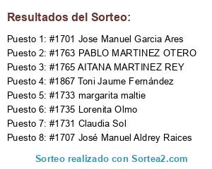 - Ganador 1: #1701 Jose Manuel Garcia Ares