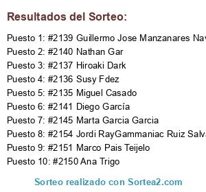 - Ganador 1: #2139 Guillermo Jose Manzanares Navarro