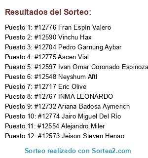 - Ganador 3: #12704 Pedro Garnung Aybar
