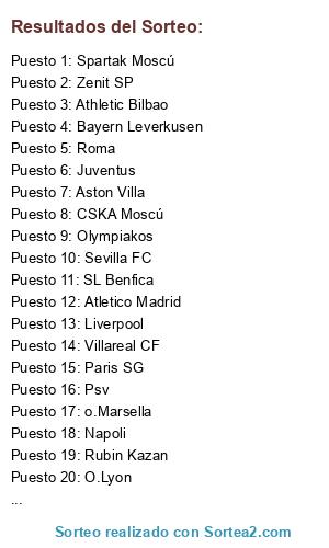 Resultados del sorteo:
