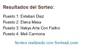 Lista de participantes: Cintia Medina, Déborah Tg, Vanessa Vallejo, Patricia Espada Sesar, Arantxa de Ayarra, El rincón de Disidra, Davinia Molina Quiros, Iregumy Creaciones, Liz Medina, Paula Montesinos Hernandez, Raquel Lunitap, Esther Rodriguez Reche, Eva Manzano, Alejandra Villanueva, Vane Sa, Natalia Cebollero Fdez, Rafa Diaz, Mari Cruz Montaño Jara, Maria Quiles Rives, Izaskun Fernández Escalante, Virginia Alba Rivera, Fimoyabalorios Nieves, Angela Carpente Garcia, Raquel Dura, Merchy Quinteiro Garcia, Gloria Iglesias, Clara Garcia Doblado, Esther Edición Limitada, Angelines En mi Cielo, Fornituras Mil, Monica Duarte Sangiao, Tamara Rodriguez Andreu, Encarni Sanchez Alanis, Maria Iluminada Martinez Garcia, Nekys Arte Con Fieltro, Alicia Romeo Pina, Ana Belen Haro, Luisa Fluixa, Sombra Gatuna, Carolina Choya Frade, Silvia Chivi Chivi, Mónica Herrerías, Yessica del Amo Sanchez, Miguel Angel Fuentes Algaba, Ignacio Antonio Marin Calle, Ariadna Ozones Berrueco, Los Mundos de Rocio, Toni Medina, Esteban Moreno Díaz, Adriana Carnicero Samaniego, Lorena Dopico Moreno, Martin Fernandez Moreno, Elisa Jimenez, Dolores Muñoz, Maria Moreno Sanchez, Maria Angeles Diaz Peinado, Antonio Medina Raimundo, Diego Mc, Lucia Oliva, Zara Sanchez, Celia Perez Luzz, Monica Sanchez Robledo, Cristina Candido Perez, Leticia Garcia, Davinia Martinez Alcocer, Ana Perez Perez, Maria Amparo Sanchez Moreno, Marisa Sopeña Sanchez, Esteban Diaz, Yurina Manrique Ostos, Sonia Arroyo Ruiz, Sandra Ferré, Núria Garcia Sala, Antonio Perez Amor, Laura Sofia Lopez, Nube Garrido, Caminio Perez, Saray Cardenal Diaz, Juan Manuel Sanchez Moreno, Luisa Sanchez Montes, Beatriz Garcia de Quirós, Marta Duran Perales, Anagelu Craft, María Jesús Horcas Pérez, Meli Carmona, Rosa María Luque García, Lidia Sanchez, Amparo Martínez Estellés, Diego Hermida Sanchez, Irene Loa, Nicole Stephanie Espinoza, Maria SaMo, Toñi Anm Solis Senso, Leticia Piriz Mateos, Gloria Castellanos Santos, Desirée Ramírez Santano, Vanessa Muñiz Alvarez, Carmen López Mateo, Tamara Gonzalez Morilla, Rosa Gonzalez Centeno, Noelia Blanco Prian, Mónica Terán Arroyo, Beatriz Crem, Amanda Mpc, Verónica Pagán, Ángeles Trujillo, Beica Mai, Aintzanika López, Ester García Ramon, Maria Merisa Diez, Jusi Gras, Alberto Martinez, May Lopez, Érika de Vega, Paz Crespo, Noemí La MiMi, Meryjacander Brochesycomplementos, Maria Jose Hadita Labrador Saez, Jara Masa Carracedo, Luna Lunera, Yolanda Acuña, Elena Mesa, Paqui Risquez, Smile Felt Broches.