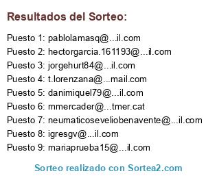 - 2º SUPLENTE PREMIO 2 : neumaticoseveliobenavente@...il.com