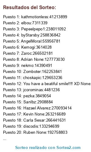 - 2016-10-28 22:52:40 (GMT): Se modifica el sorteo (los participantes y ganadores permanecen intactos)