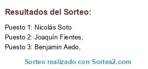 Lista de participantes: Benjamin Aedo,, Vicente henriquez, , Vicente henriquez2, , Macarena Sáez, , Isidora Hidalgo, , Antonia silva, , Matias Avila, , Daniela cerna, , Matías Allende,, Jaime Olate, , Camila Valenzuela, , Joshuah Mendoza, , Cristian Acevedo, , Ignacia Eriz, , Joaquín Fientes, , Benjamín Fierro,, Ignacio Araya, , Manuel Romero, , Nicolás Soto.