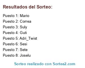 Lista de participantes: Correa, Adri_Twist, Suly, Mario, Sete, Guti, Sesi, Joselu.