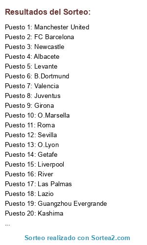 Lista de participantes: B.Dortmund, Lugo, Getafe, Guangzhou Evergrande, Napoles, Chelsea, Real Madrid, FC Barcelona, Lazio, Valencia, Sevilla, PSG, Juventus, Las Palmas, Roma, Eibar, River, Newcastle, Girona, At.Madrid, Liverpool, Celta, Manchester United, O.Marsella, Ajax, O.Lyon, Albacete, Levante, Betis, Celtic, Kashima, A.Bilbao.