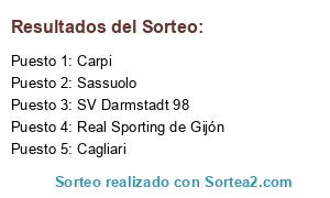 Lista de participantes: SV Darmstadt 98, Cagliari, Sassuolo, Real Sporting de Gijón, Carpi.