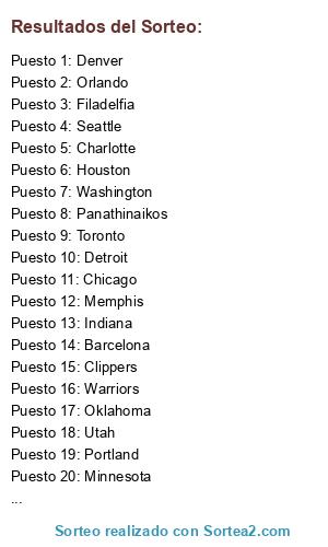 Resultados del sorteo: