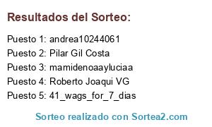 Lista de participantes: Antonia Navarro Hernandez, Naiara Cano, Maria Hoyo, Cecilio Jabalera García, Angeles Garcia Portillo, M Jesus PF, Miguel Jabalera, Juanjo Vemar, Miguel Godoy, David RJ, Angel JG, Jose Antonio Blanco, Maria Jose Molina Reina, Mariayo Fd Gan, Cristina Maria, Mary Sasve, Maria Rodriguez, Clara Garcia, Cristina Griñan Mora, Marga Fernandez, Vane Fernandez, Sofia Esther Ruiz Garcia, Tatiana RM, Jose Julian Escudero, Inaiun Pedros, Baor Cucu, Sergio Yelmo Sauce, Xiomara Amoros Martinez, Reyes Mas, M Lorena Carrasco, Mari Tere M Clemente, Rosa Rodriguez Ortiz, Rosi Jabalera, Sheila Mielgo Romero, Cristina Garciabenito, Mar Longui Cruz Jurado, Almudena Jimenez, Pepi Bejarano Gomez, Foto Anaritz, Chenchi Vals, Jose Sayas Perez, Monica Gb, Aileen Aaron, Erica Lolina Calatayud, Judith Reig Garcia, Carolina Fernandez, Marta Diaz, Jessica Gomez, Paky Molina Mesa, Patricia FP, Lara Diaz Garces, Mary Fernandez Gonzalez, Natalia Alonso Freire, Alejandro Fernandez Conde, Melisa Herrera Alonso, Alicia Segura Montero, Rosa Cortina Suco, Paula Rodrigo, Ana Bertol, Beatriz Tre, Lara Toral Fraile, Laura Mar Navarro, Maria CG, Beatriz Castañeda Quintana, Inma Martinez Martos, Beatriz Garcia Barredo, Leticia Fidalgo Gonzalez, Beatriz Crespo, Estela Asensio, Eva Fortuño, Vero Sedamanos, Myriam Adsuar Paez, Tere Alonso Bejarano, Pilar Gil Costa, Soniasalvicristian Ramos Marchan, Amparo Abad Marco, Mariajose Garcia, Mar Iris, Pilar Gonzalez Ramos, Montse Fernandez Martin, Sandra Ojeda Salido, Roberto Joaqui VG, Gabriel Rivas, Encarni Vereda, Lola Ureña, Beatriz Valdes, Lola Bernal, Mari Munin, Begoña Belmonte Garcia, Esther Corchete, Macarena Cordoba García, Lola Xata, Jessica Ramirez, Cristina Serrano Rodriguez, Nuria Ruiz, Noelya Calles, Julia Figueras, Sagrario Rodriguez, Natalia Veloso Caparros, Laura Sanchez Castrillon, Carmen Lucia, a_r_i_a_d_n_a_19, aliciagm7711, romathedogg, deliiagarciiaa, aikotinia, mamasnovatas, suricata_shop, sebastiancaceres824, pakmesigues, miniikaty, larapravia05, lanamuu7, frasesbybrenda, ivee19_, beracampanilla, estibalizvazquezdelafuente, z.torres.a, pigcayetana, mericacabanas, mah_mah_maria_, maria_lucasgf, lilianaelizabeth28, scarlettlaliberte, nereajimeneznjn, lorenamendezgarces, _jimenita_16, crecerconzaira, sara._.soler, cejupe, arantxagregorio17, x_white.hunter_x, garciatejerolaura, mamadelucas90, letticiapenas, haiizealoopez, dormilona7, mayte_navarro12, olguiitac7, prez_daya, lidiagarciaruiz96, anyta656, rubendomiinguez, sinjuicio.stylist, pitu_vidasana, losdiablillos_teba, heidi_vargasreyes, sofiamr_2008, thu_elena_2, jennifermacenabr, lidon.monlleo, dnc._13, mariarodriguezl.94, nessiwhite, belenpallares97, a_mes_a_mes, nereita_cl_, _carlotaaroca, stefisama, ana_marcos_querol, jasmindior91, m_olga_prieto, roxiogc, nereaalbaladejoperez, irs.miimii_xx, su.puga, lolitamontero99, giselacarameloo, funtaskidz, thu_rubitahh_94, anabaza, ana_y_rafi, tina_runnigtrail, 41_wags_for_7_dias, maestraal, andiara.esperanzajimenezsauci, alphaestatesmarbella, chiburraja, morettajewels, neushm9, mel5912, florrrri__, claudia_holborn, annitamurillo, elleenacoco, josebn600_pk, beromadel, super123543, _alice_sonia_sys, _denisaa04, esthertruy, alireza_hajian_123, magalifont97, rosamariagarcia60, raquelpueyo, mamidenoaayluciaa, jakiii_04, gloriavlc, ioana_dejan, claudia_hdez06, sorayiita97, kkitinet, mamasleonas, paolamariiiiin_, lorennaa17, csroline1334343, las_cosas_demartina, godoy3546, farmaciasantadomingomurcia, loultimoenpeliculas, aro.car, mapetiteamelieetmoi, andreafdezz0, tahmasebi8067, albertt21, amandatrinidadantunez, maryhe28, veranica_la_morena, guamancumbajin, taniaalonso84, luciiap_06, annamartgo, maira_boiro, eugeniacaballerobejarano, andrea10244061, espart_artesania, yiselaramirez2011, nereafamili, lorenakeupdream, anusik54, badgalmadudadu, manuelmendoza235, mamifeliz_noeyfrancismo, luchi.mg.26, ladama_rosa, mariadoloresgonzalezsilva, _naza_hidalgo_, nicolaszapatagonzalez, cucarachamentirosa, rodriguez.mariangie, marinamg_05, cristinagallardocomplementos, itsbeautyday, charoyjulian, noemivelasquezbarba, berenguelashop, saraarmanni, _analopez4, patricia_1718, transito_rodriguez, mariajose_sidon, lucyesou, gemeta_26, hlnarguez84, softieparker, rosabelcliiment_, nupics_, marimery85, charlot_hm, aiitana___14, tindra.reborn, mari.rodri2, eeseteka, dasonnsmith, saraygarrochofernandezg, anika_lopez_3, anabelsanchez112, _laneros, mommy_sandiy, maacaareenaa_23, arti_gz, dandolalana, mariaaaa_11_06, rocioharomoreno, ariadnagome, mariajoseromeroexposito, v_y_n.d, buchito94, neiaiturrioz28, anagm_7.515, jimenaa_2001, comidarealdiaria, anavlc_, spain_marroc, colors.on.top, lachicadelcomic, ruiz.nuria26, o0_monicaperez_0o, verokeonietosanchez, elmundo_de_alana, coelloclaudia, alaitz_arca, rosy29r, mimundoavecmoi, marialuz60, _.jennyfer._3006.