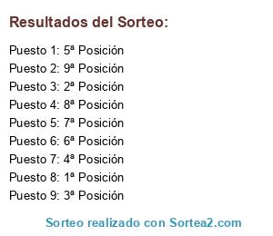 Lista de participantes: 1ª Posición, 2ª Posición, 3ª Posición, 4ª Posición, 5ª Posición, 6ª Posición, 7ª Posición, 8ª Posición, 9ª Posición.