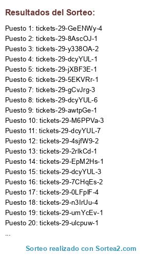 Este sorteo ha sido certificado por Sortea2. Sortea2 garantiza que: