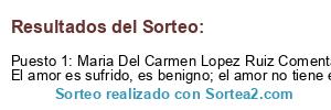 - Ganador: Maria Del Carmen Lopez Ruiz Comentario: Lo compartiría con mi esposo Tomás 🥰💯♥️ El amor es sufrido, es benigno; el amor no tiene envidia, el amor no es jactancioso, no se envanece; no hace nada indebido, no busca lo suyo, no se irrita, no guarda rencor; no se goza de la injusticia, mas se goza de la verdad. Todo lo sufre, todo lo cree, todo lo espera, todo lo soporta.