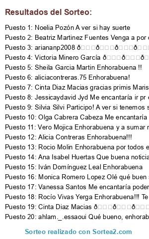 - Puesto 18: Rocío Vivas Yerga Enhorabuena!!! Te mereces esto y mas!! Gracias por el sorteo y por tu gran blog 😘❤️