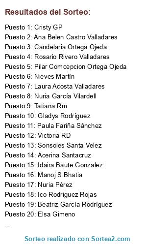 Lista de participantes: Vanessa Esmoris Parga, Nuria García Vilardell, Acerina Santacruz (2 participaciones), Rosario Rivero Valladares, Cristy GP, Yessica Martin, Nieves Martín (2 participaciones), Candelaria Ortega Ojeda, Manoj S Bhatia, Pilar Comcepcion Ortega Ojeda, Tatiana Rm, Raquel González, Ico Rodriguez Rojas, Laura Acosta Valladares (2 participaciones), Julia Lacoma, Sonsoles Santa Velez (2 participaciones), Beatriz García Rodríguez, Idaira Baute Gonzalez, Lilia Ramos Méndez, Nuria Pérez (2 participaciones), Ana Belen Castro Valladares, Paula Fariña Sánchez, Elsa Gimeno, Cristina Zaharia, Erasma Perez, Gladys Rodríguez, Dulce Pérez Pérez, Victoria RD.