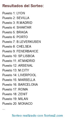Resultados del sorteo: