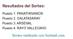 Lista de participantes: ARSENAL, PANATHINAIKOS, RAYO VALLECANO, GALATASARAY.