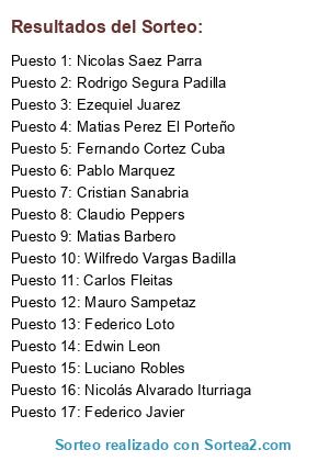 Lista de participantes: Pablo Marquez, Carlos Fleitas, Fernando Cortez Cuba, Nicolás Alvarado Iturriaga, Nicolas Saez Parra, Wilfredo Vargas Badilla, Claudio Peppers, Mauro Sampetaz, Edwin Leon, Federico Javier, Cristian Sanabria, Matias Barbero, Federico Loto, Luciano Robles, Matias Perez El Porteño, Ezequiel Juarez, Rodrigo Segura Padilla.