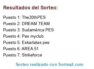 Lista de participantes: AREA 51, Strikeforce, The20thPES, Eskarlatas pes, DREAM TEAM, Sudamérica PES, Pes myclub.