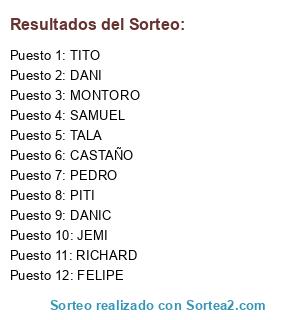 Resultados del sorteo: