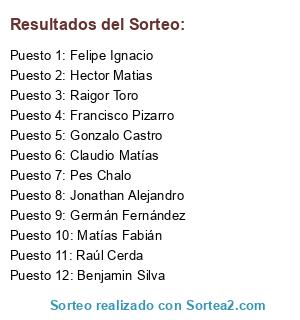 Lista de participantes: Leo Quezada, Claudio Paolini, Claudio Matías, Felipe Ignacio, Matías Pardo, Jonathan Alejandro, Matías Gonzalez, Joaquin Cortes, Hector LLanos, German Fernandez, Gonzalo Castro, Jonathan Rodriguez, Raigor Toro, Raul Cerda, Jorge Oliva, Marcelo Romero.