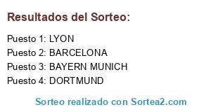 Lista de participantes: LYON, BAYERN MUNICH, DORTMUND, BARCELONA.