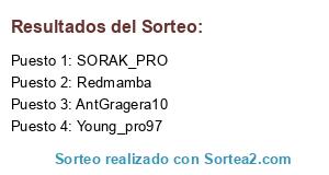 Lista de participantes: AntGragera10, SORAK_PRO, Young_pro97, Redmamba.