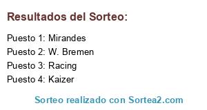 Lista de participantes: Racing, Kaizer, Mirandes, W. Bremen.
