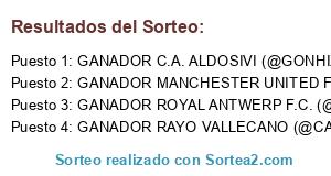 - GANADOR C.A. ALDOSIVI (@GONHIX) VS S.S.C. NAPOLI (@CHOLILLO7) - GANADOR MANCHESTER UNITED F.C. (@JESUSTORRESS) VS C.D. TENERIFE (@MAKAROOV69)