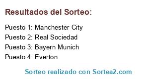 Lista de participantes: Manchester City, Bayern Munich, Real Sociedad, Everton.