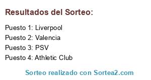 Lista de participantes: Liverpool, Athletic Club, Valencia, PSV.