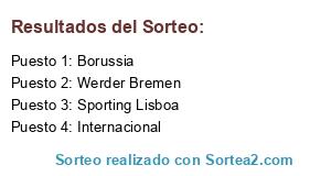 Lista de participantes: Borussia, Sporting Lisboa, Werder Bremen, Internacional.