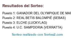 - GANADOR DEL OLYMPIQUE DE MARSELLA (JESÚS) VS ATLÉTICO DE MADRID (MANU) - REAL BETIS BALOMPIÉ (SEBAS)