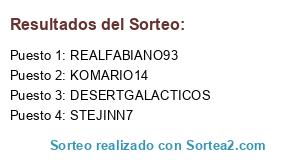 Lista de participantes: STEJINN7, REALFABIANO93, KOMARIO14, DESERTGALACTICOS.