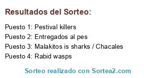 Lista de participantes: Rabid wasps, Malakitos is sharks / Chacales, Entregados al pes, Pestival killers.