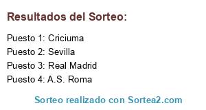 Lista de participantes: A.S. Roma, Criciuma, Real Madrid, Sevilla.