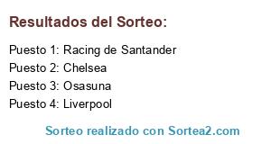 Lista de participantes: Racing de Santander, Osasuna, Liverpool, Chelsea.