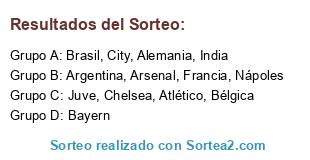 Lista de participantes: Brasil, Argentina, India, Bélgica, Francia, Alemania, Arsenal, Bayern, Atlético, Chelsea, City, Nápoles, Juve.