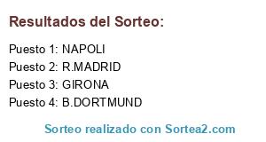 Lista de participantes: NAPOLI, R.MADRID, GIRONA, B.DORTMUND.