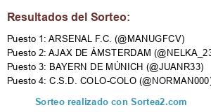 Lista de participantes: BAYERN DE MÚNICH (@JUANR33), ARSENAL F.C. (@MANUGFCV), C.S.D. COLO-COLO (@NORMAN000), AJAX DE ÁMSTERDAM (@NELKA_23).