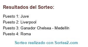 Lista de participantes: Juve, Roma, Liverpool, Ganador Chelsea - Medellín.