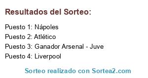Lista de participantes: Atlético, Liverpool, Nápoles, Ganador Arsenal - Juve.