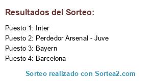Lista de participantes: Bayern, Barcelona, Inter, Perdedor Arsenal - Juve.