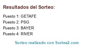 Lista de participantes: RIVER, PSG, GETAFE, BAYER.