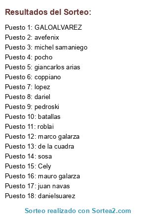 Lista de participantes: Parrales, Coppiano, Clasico, Erick Saltos, Fvr20, FranklinUIO, Ilegal, Javi Pando, Juve7korn, Lemus, Leo S, Marco Galarza, Mauro Galarza, Mauro SA, Paul Sebastian, Sebitas, Maurinho, D Urresta, Fromero, Fez18, Zizu.