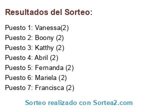 Lista de participantes: Mariela (2), Vanessa(2), Boony (2), Katthy (2), Abril (2), Fernanda (2), Francisca (2).